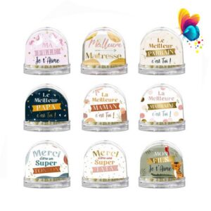 • À l’Intérieur : Vous insérez généralement une ou deux photos (recto-verso) ou un message imprimé au centre de la boule, créant une scène magique et intime.